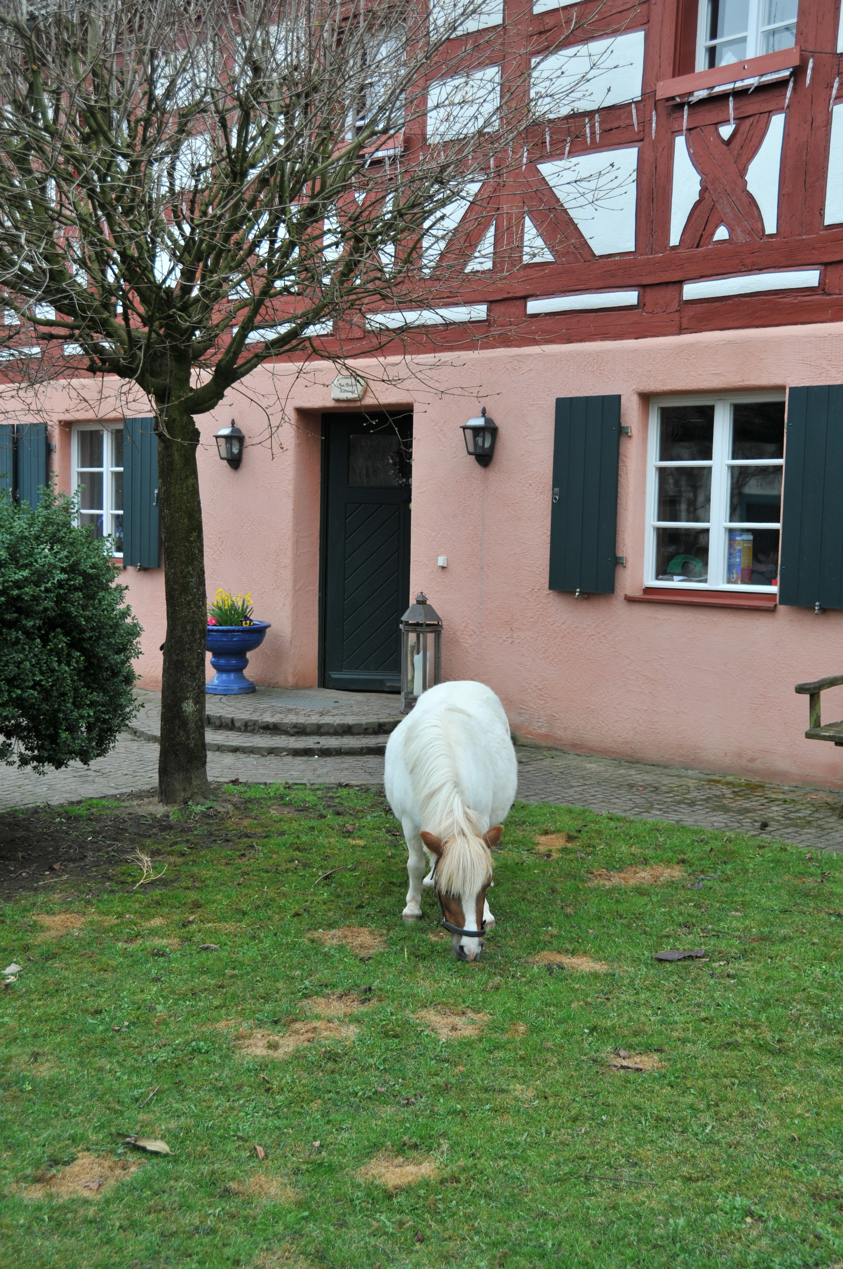 Wenn Sie nicht gerade wieder unter einem Koppelzaun durchgehuscht ist steht sie irgendwo auf unserem Hof oder zumindest im nahen Umfeld :)